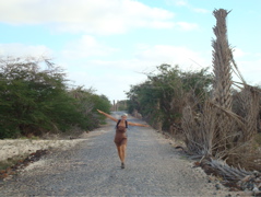 Le lundi, nous partons tout de même faire une marche tous ensemble, laissant Pierre surveiller les bateaux. Nous mettons un certain temps à trouver la jolie route décrite dans le guide car le développement rapide du tourisme a modifié les tracés et nous longeons l'aéroport, puis la décharge avant de trouver enfin la vieille route pavée qui serpente entre les dunes et les palmiers (mais qu'est-il arrivé à ces palmiers ???).