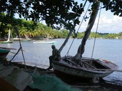 Jeudi 25 décembre 2014 : Nous passons Noël à... Barahona ! Après un aller-retour rapide et pénible (le retour !) à l'île à Vache/Haïti. Beaucoup de gens ont adoré ce coin... nous ne nous y sommes pas sentis à l'aise. La beauté n'a pas compensé la misère, la révolte face à notre impuissance. Nous n'avons surtout pas eu l'envie d'y rester plus de quelques jours et comme la fenêtre météo se présentait tout de suite pour un retour, nous l'avons saisie au vol ! Nous garderons l'image de ces belles barques sous voiles dans un paysage magique et quelques beaux sourires.