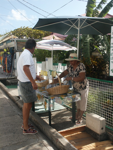 Mais surtout, vous côtoierez les habitants de l'île, parfois blancs, parfois noirs ou métis, mais parlant toujours le même créole chantant. Comme tout le monde se déplace à pied, ou éventuellement en scooter, les rencontres sont fréquentes. Les Saintes ayant un climat sec, elles n'ont pas eu de plantations, donc pas d'esclaves et la population locale descend de pêcheurs bretons. Vous verrez les femmes vendre les tourments d'amour (pâtisseries) à l'arrivée de ferries, le petit vieux proposer chaque après-midi devant sa maison son flan de giraumon ou de patate douce, la vendeuse de sorbet coco, les étalages de punchs et petits pâtés ou de coquillages et bibelots divers. Le matin, les pêcheurs vendent leur poisson sous les arbres en bord de mer. Vous admirerez aussi les jolies enseignes de studios et de chambres à louer dans tous les coins de l'île. Dans les boutiques, vous trouverez des habits et des bijoux de confection locale. Cela change du "made in China". |